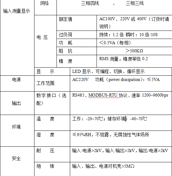 ●可選配1路模擬量4-20mA變送輸出功能,通過編程設(shè)置可實現(xiàn)三相電壓中任意一相(定貨時需指定)的模擬量(DC 4-20mA)變送輸出功能